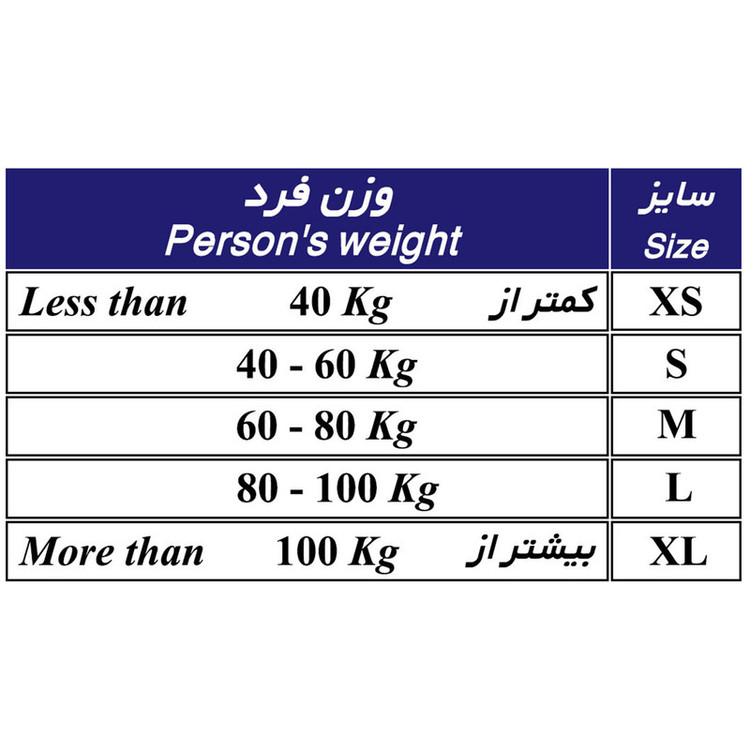 اندازه دور سینه را از زیربغل اندازه گیری کنید و با توجه به راهنمای زیر، سایز مناسب خود را انتخاب کنید: