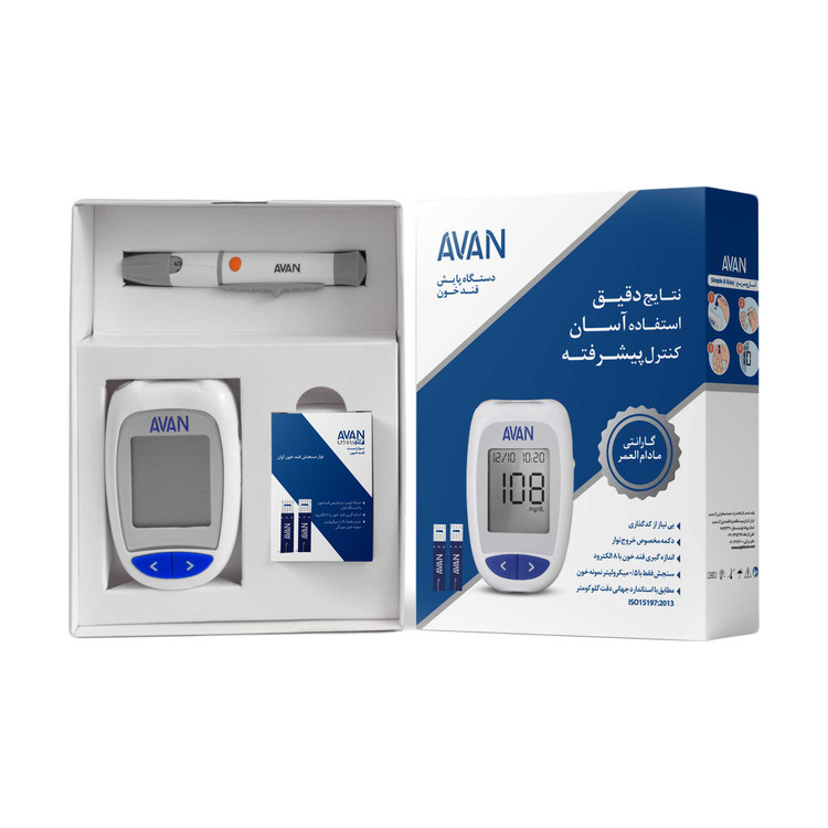 دستگاه تست قند خون آوان مدل AGM01 به همراه 10 عدد نوار تست قند خون