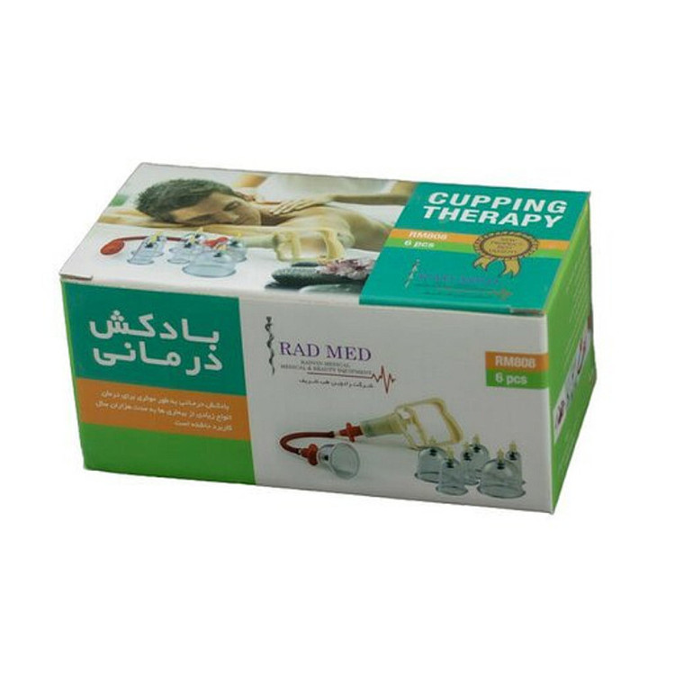 ویژگیهای بادکش 6 لیوان رادمد : بادکش رادمد RAD MED با مکش قوی و دسته چهار انگشتی همراه با رابط شلنگ، شش لیوان سوپاپدار در اندازههای مختلف و کاتالوگ میباشد. این بادکش برای استفاده خانگی بسیار راحت و مناسب است. طرز استفاده از بادکش 6 لیوان رادمد : دسته را جدا کنید و بعد از مدت زمان مورد نظر، سوپاپ ها را به راحتی با فشاردادن آزاد کنید تا لیوان به راحتی از بدن جدا شود. نیاز به فشار و کشیدن نمیباشد.
