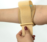 - برای بستن آن ابتدا عضلات ساعد و آرنج را در حالت شل قرار دهید و سپس ساپورت را پایین تر از آرنج ببندید.