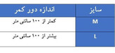 | سایز | اندازه دور کمر بر حسب سانتیمتر |